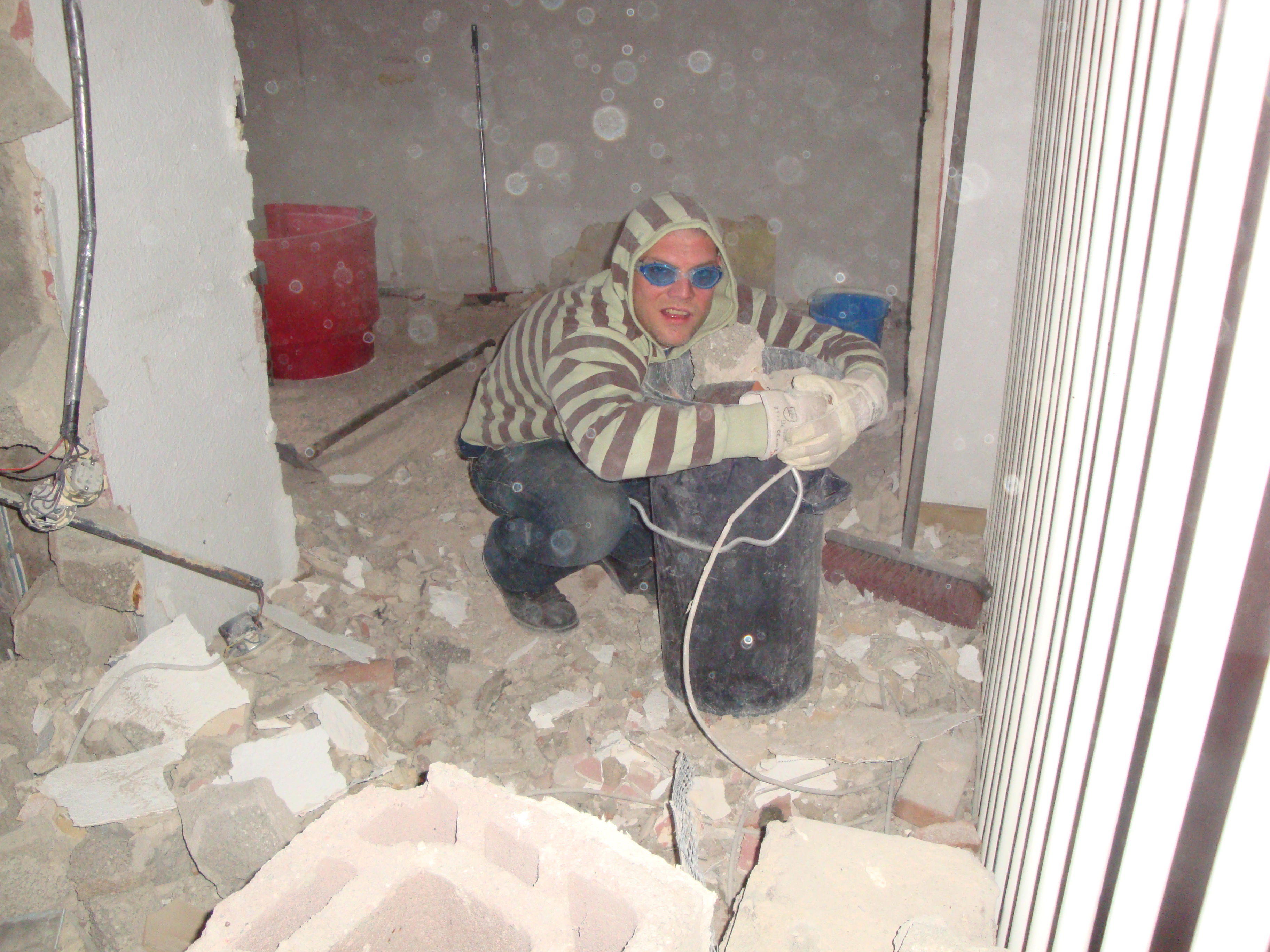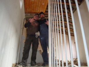 Die SPOILER-Jungs nehmen das Obergeschoss in Angriff. Der Kamin muss dran glauben, und auch die ersten Wände fallen…