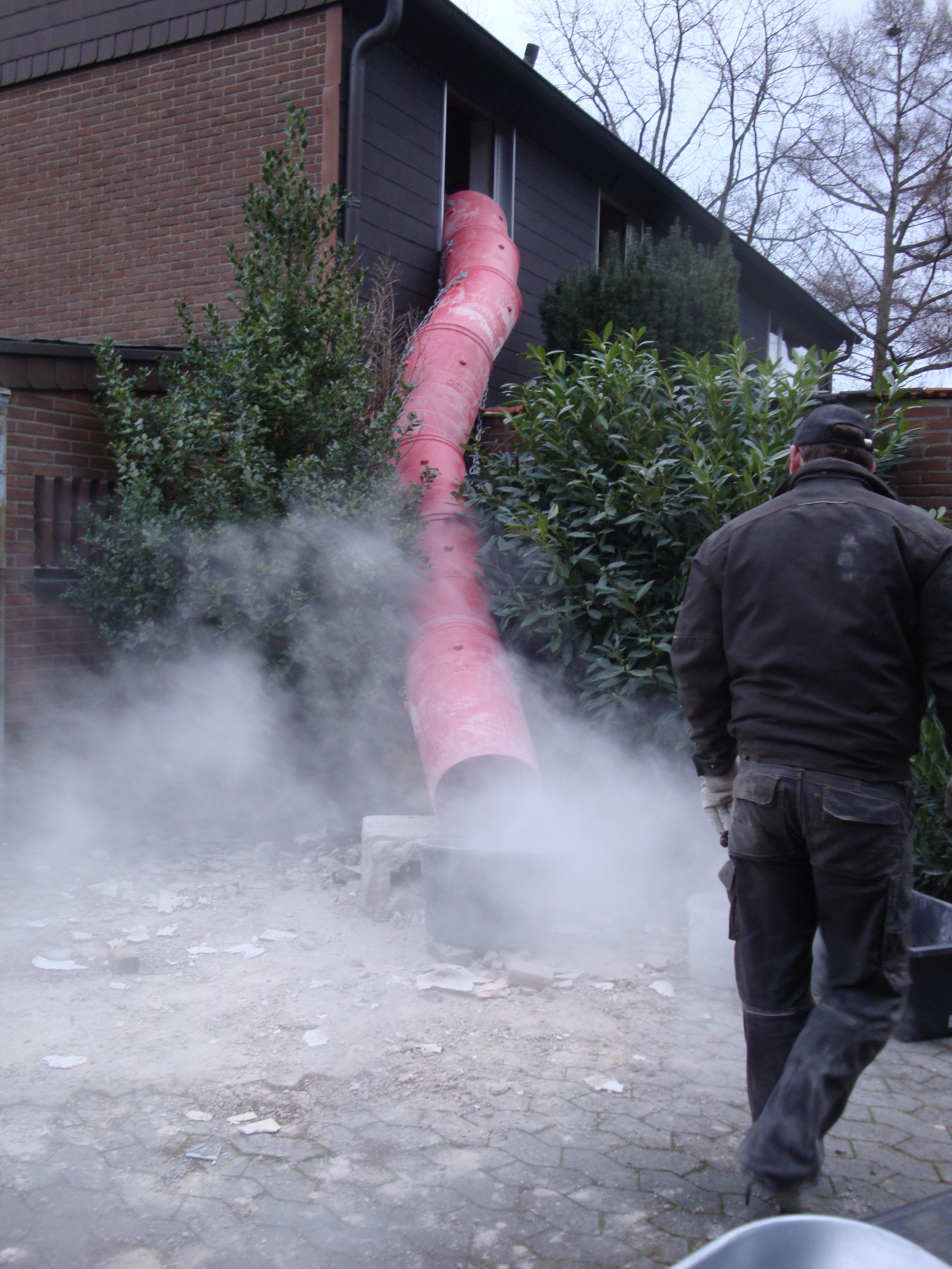 Und irgendwie hat sie was Nostalgisches, erinnert sie doch an die alte Wickrather Wasserrutsche. Ich denke kurz darüber nach, einen der Mörtelkübel nach Abschluss der Bauphase in einen Minipool zu verwandeln, entscheide mich dann aber doch aufgrund meiner Körperfülle dagegen.