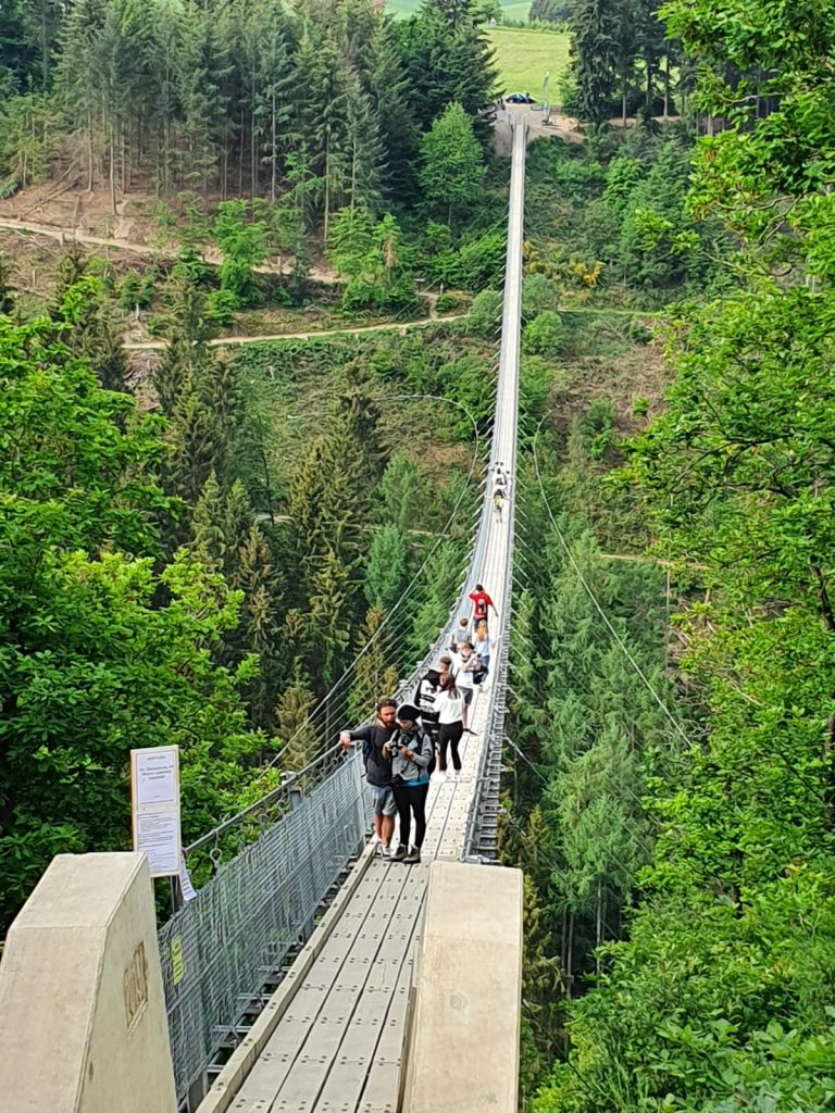 Apropos waghalsig. Der Heavy und sein Hund haben sich heute über die Hängeseilbrücke an der Geierlay-Schleife gewagt. Ich auch, allerdings habe ich ungefähr nach der Hälfte beschlossen, dass mir nicht noch übler werden muss, bis ich begreife, dass das nix für mich ist…