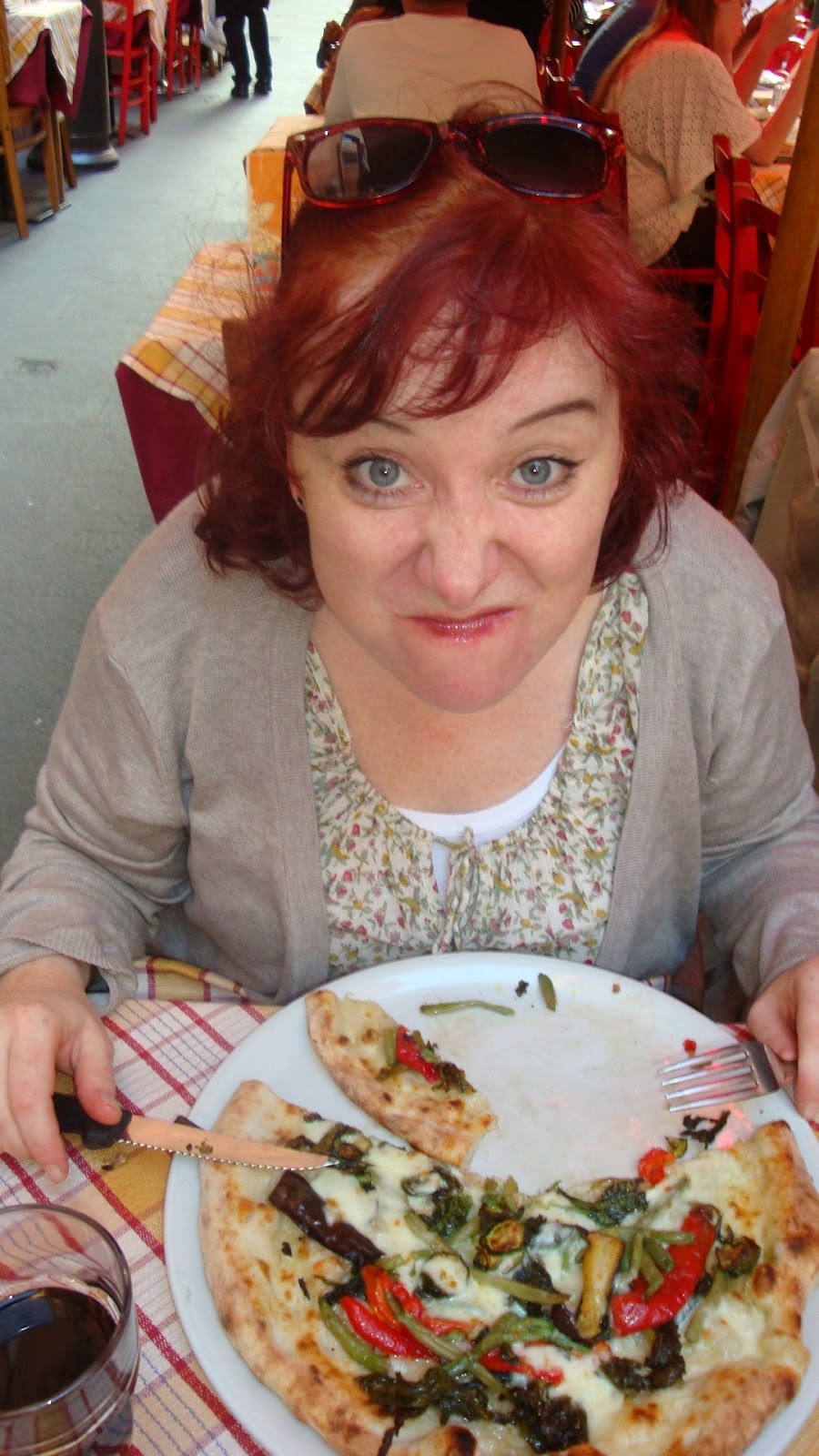Für diesen gemütlichen Spaziergang bei herrlichstem Sommerwetter benötigen wir ca 3-4 Stunden, anschließend ist wieder Zeit, die hungrigen Mägen zu füllen. Da die Engelsburg-nahen empfohlenen Restaurants aus dem VaV teilweise wieder mal nicht länger von Existenz sind, suchen wir kulinarische Erfüllung im Stadtteil Spagna. Letzten Endes sind mal wieder die lautesten Straßenanimatoren der Restaurants erfolgreich. Nachdem wir von 3-5 Gastromnomen fast in die jeweilige Trattoria geschleift worden sind, entscheiden wir uns für ein Lokal mit schönen Tischen und einem Heizpilz vor der Fensterscheibe.