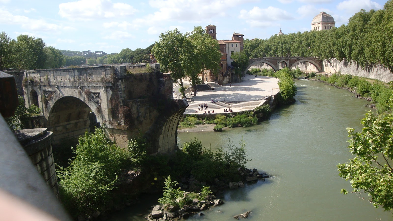 | Blich auf die Tiber-Halbinsel von der Ponte Palatino |